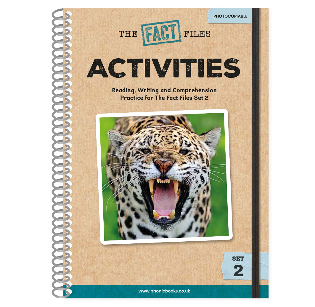 Photocopiable activities to accompany the set of twelve books in the Phonic Books The Fact Files 2 series, truly decodable non-fiction books for older readers who need support with their reading.  This activity book includes activities for reading, spelling and comprehension linked to the Phonic Books The Fact Files 2 series.