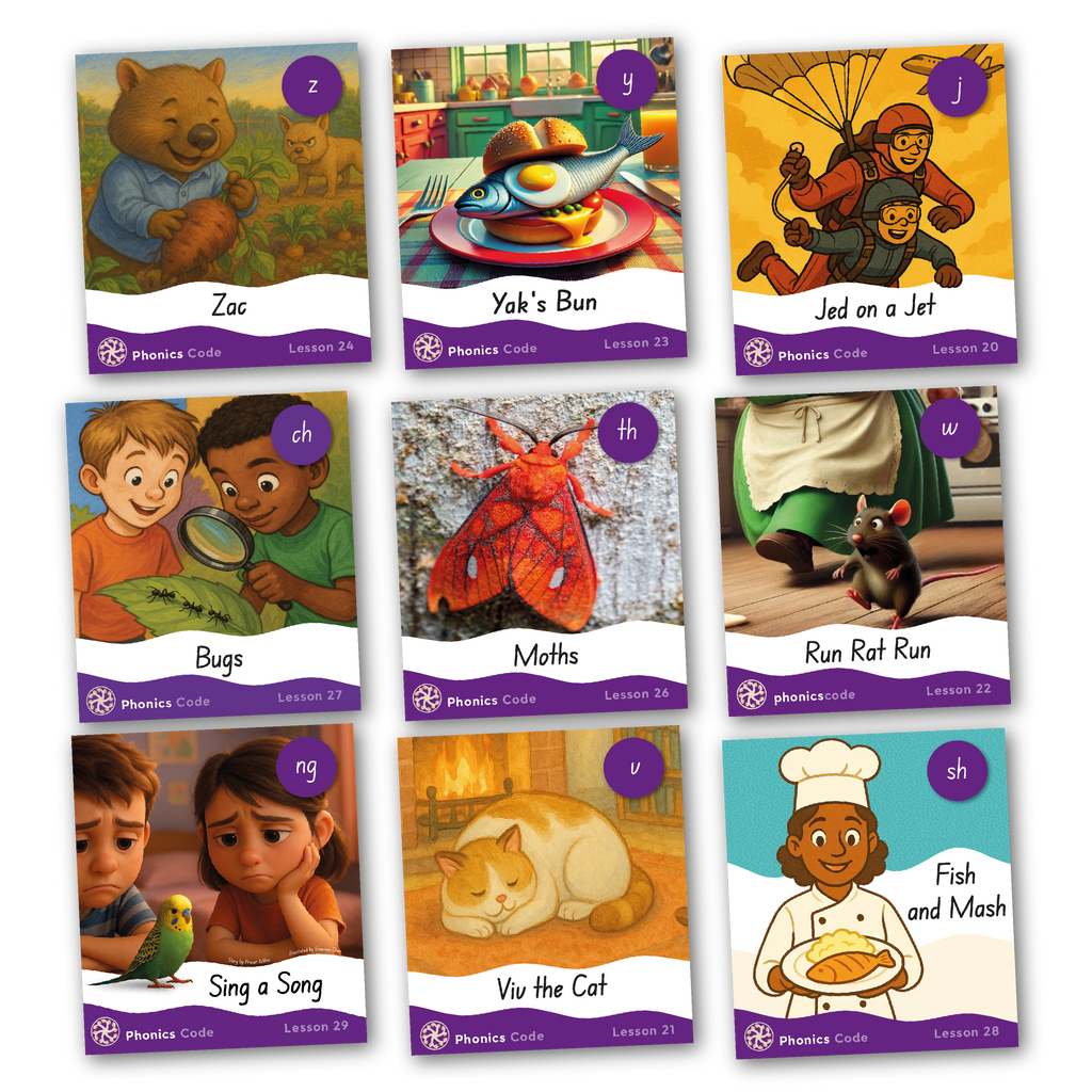 The Phonics Code Series is especially written for New Zealand kura. These structured literacy readers follow the Ready to Read Phonics Plus scope and sequence with a minimal number of tricky/heart words and can be bought individually, so you can easily integrate them into your existing programme. Engaging and humorous stories with appealing illustrations provide rich stimulus for discussion. For more information about the accompanying whole-class lessons with reading, writing and spelling activities, please visit: www.phonicscode.com