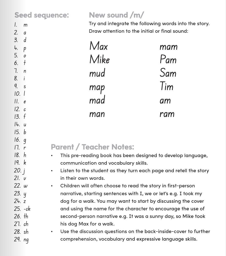 Each book in the Seed Series has been especially written for New Zealand teachers. The books follow the Ready to Read Phonics Plus scope and sequence with a minimal number of tricky/heart words, so you can easily integrate them into your existing programme.