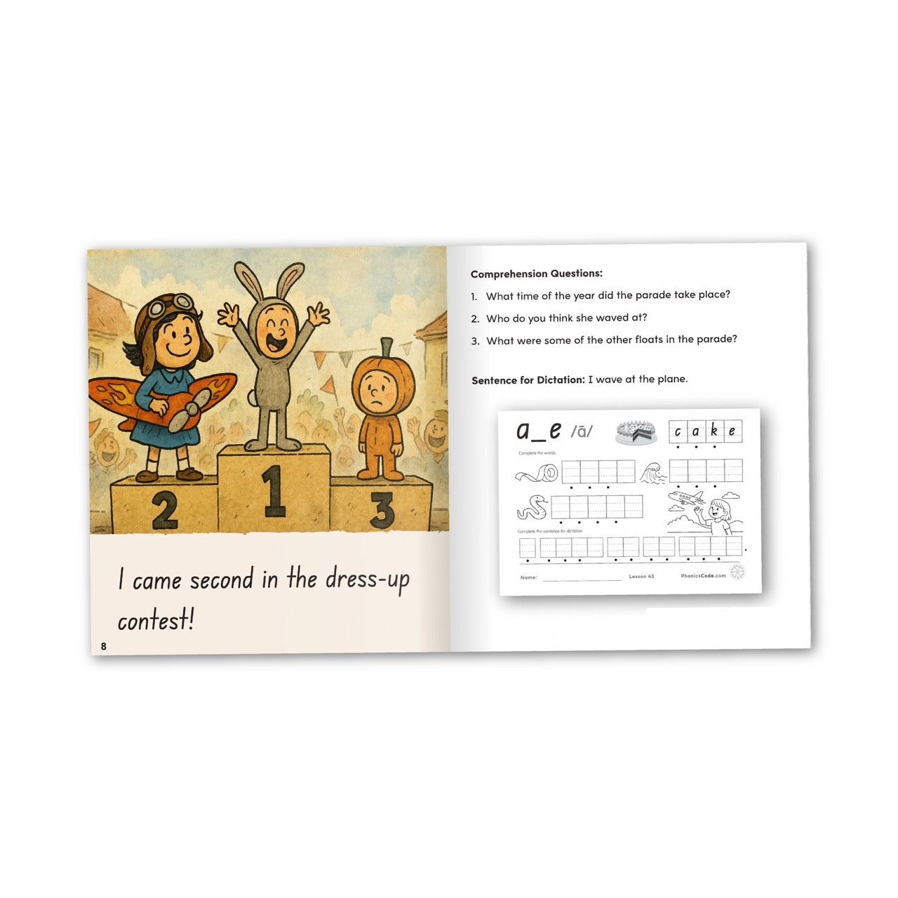 Phonics Code Book 43 introduces the split digraph spelling a_e and the /long a/ sound