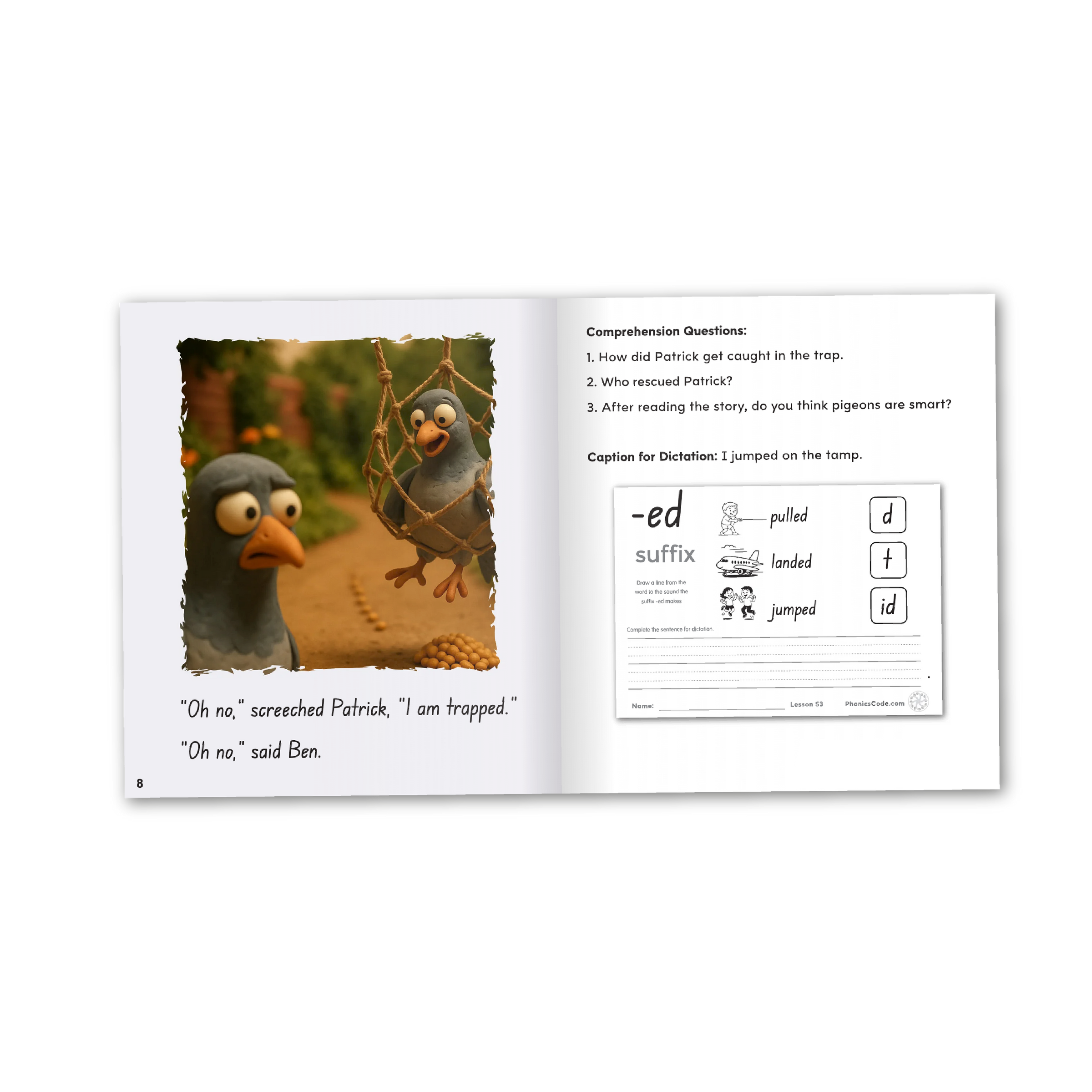 Phonics Code Book 53 introduces the suffix -ed and the pronunciations: /d/, /t/, /i-d/