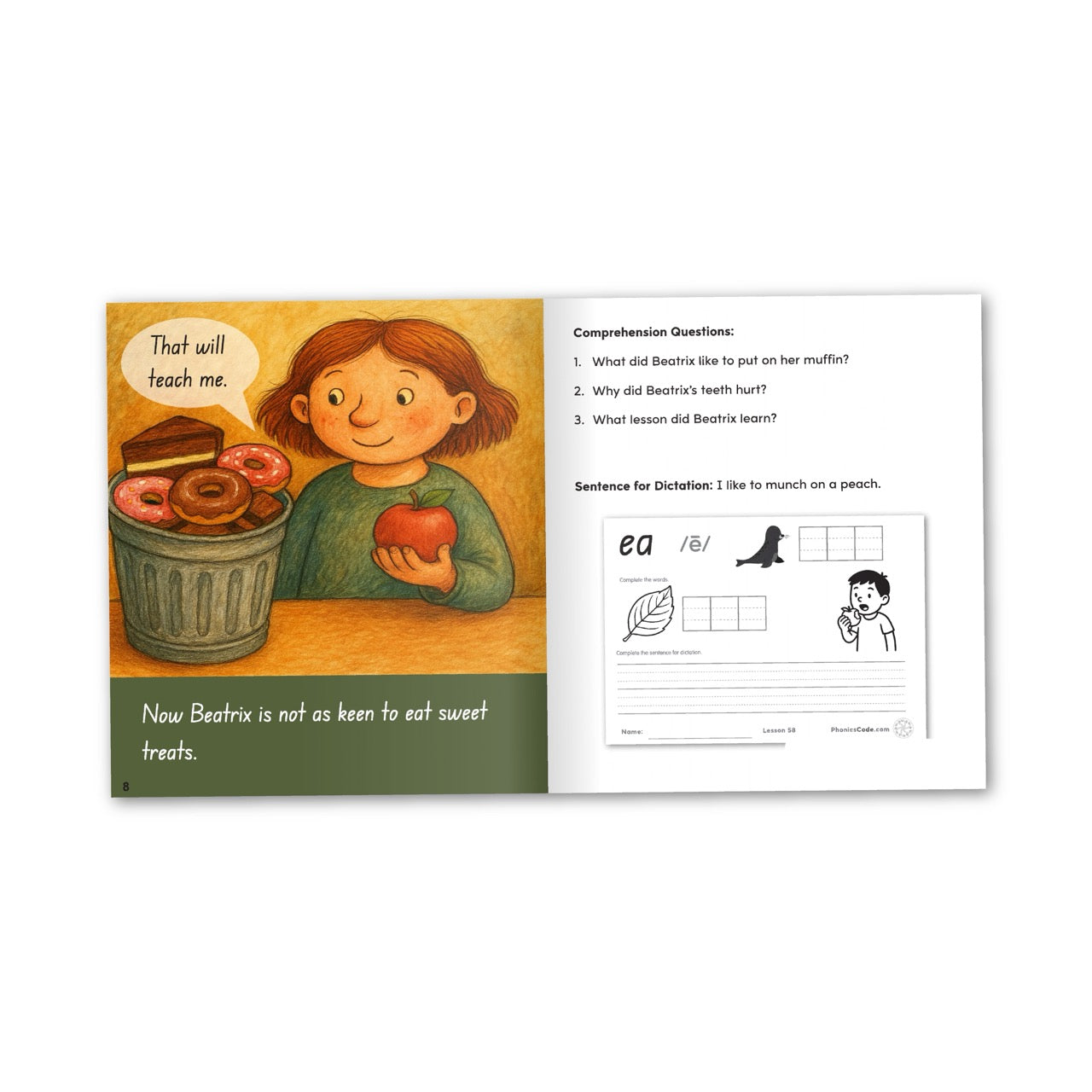 Phonics Code Book 58 introduces the vowel digraph 'ea' spelling of the /long e/ sound
