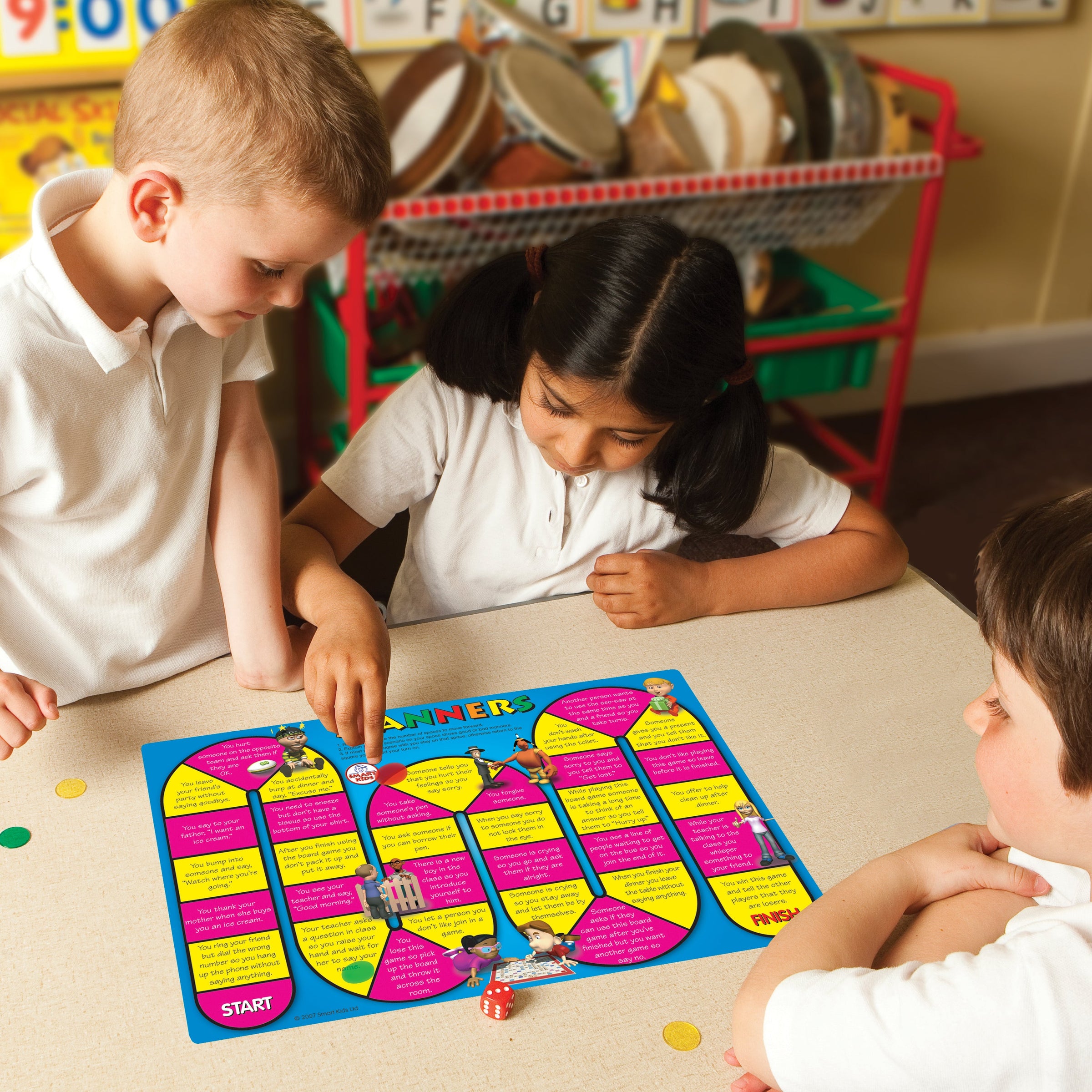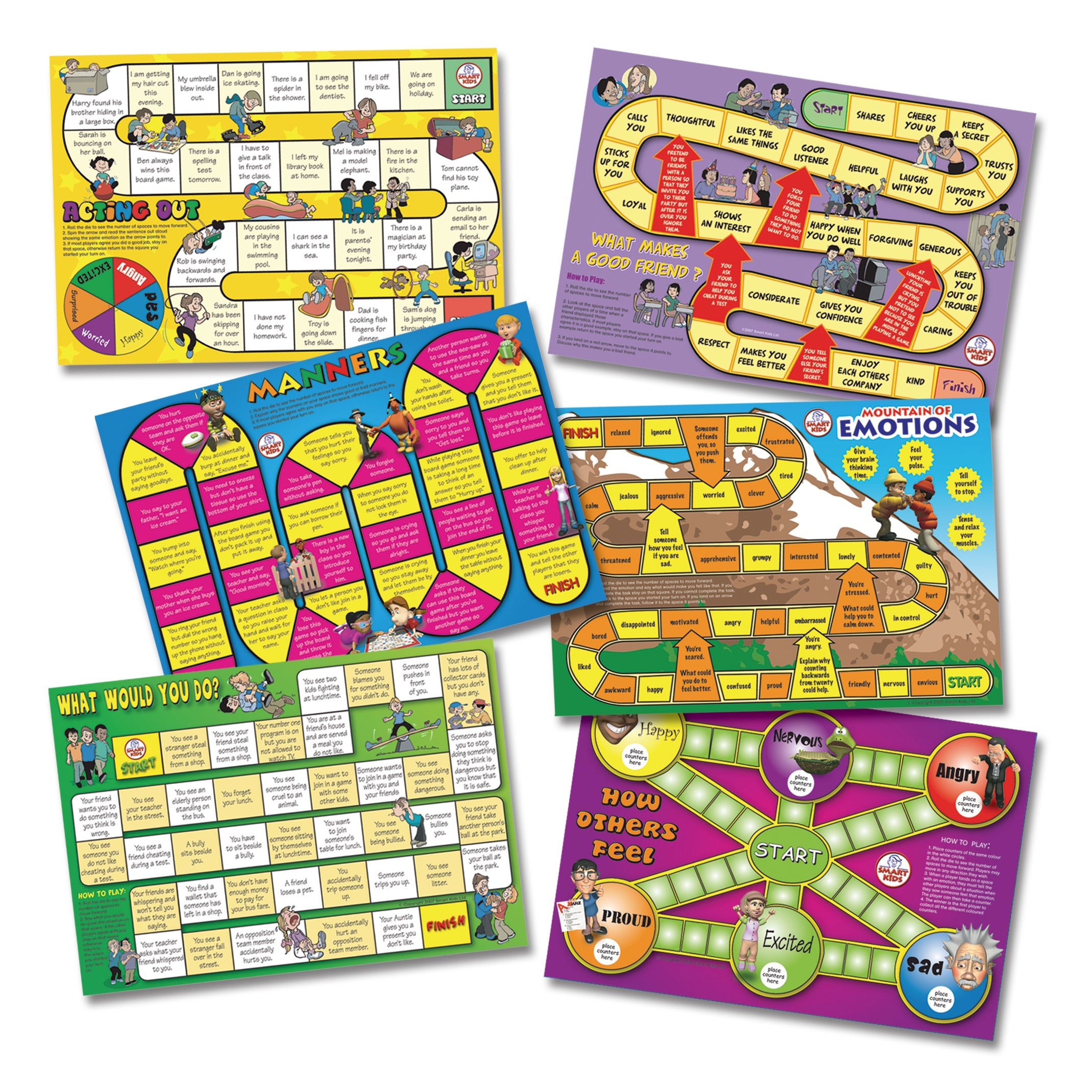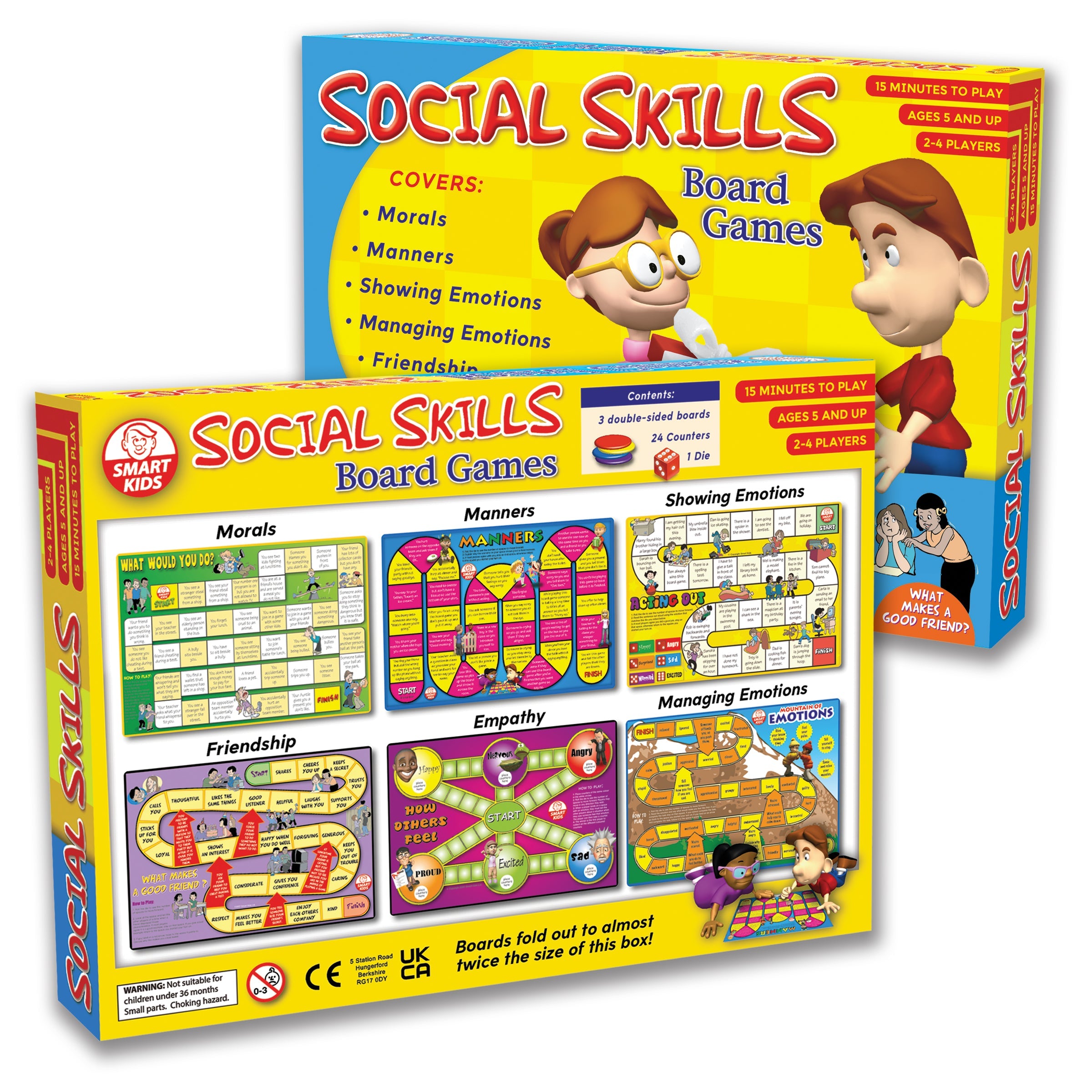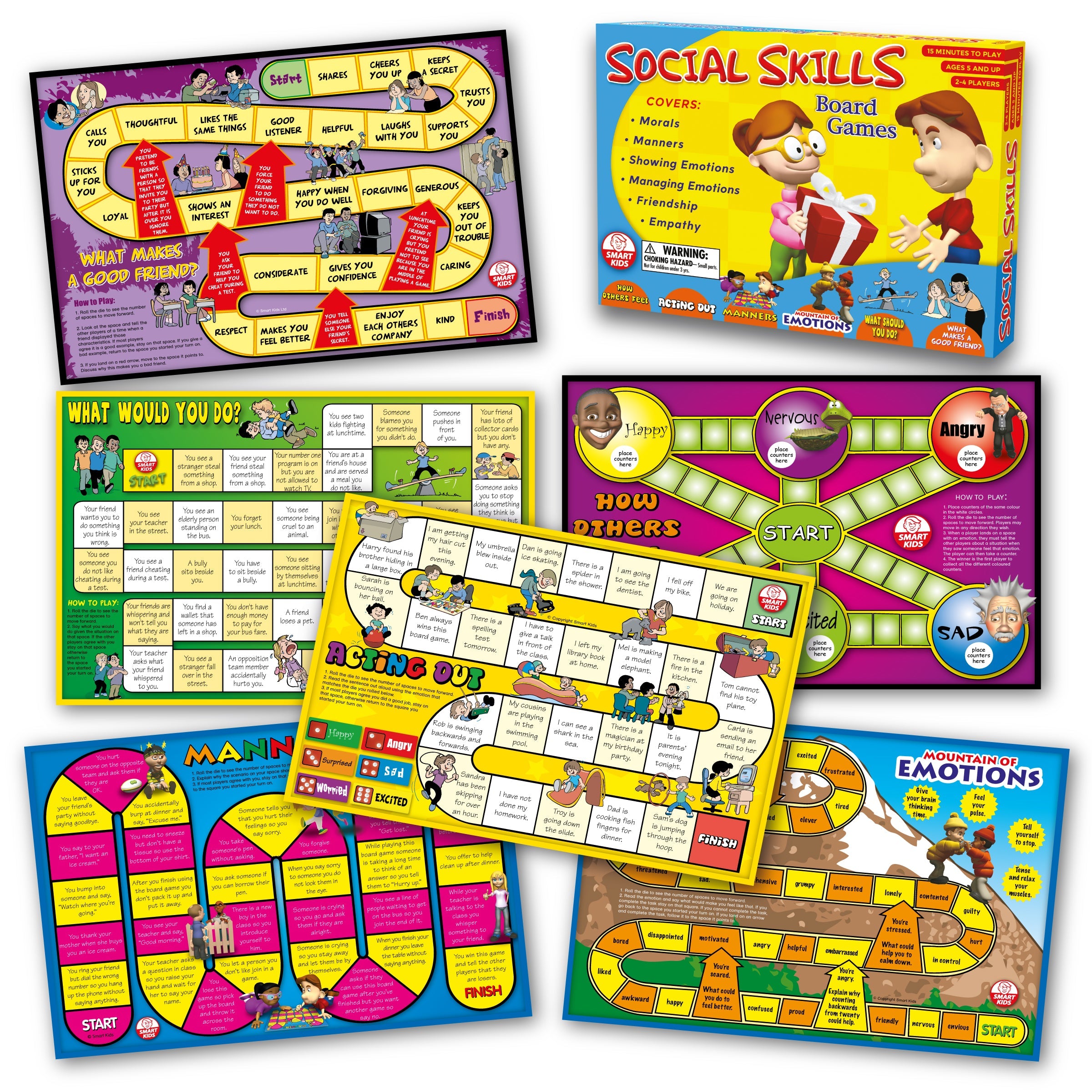 Social Skills Board Games teach children how to interact and communicate with others. This set includes activities for verbal and non-verbal communication, such as gestures, facial expression and body language. Socially competent people are able to: