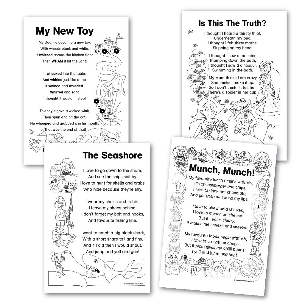 10 poems covering digraphs. Print off and let your students highlight the focus phoneme and colour in the picture.