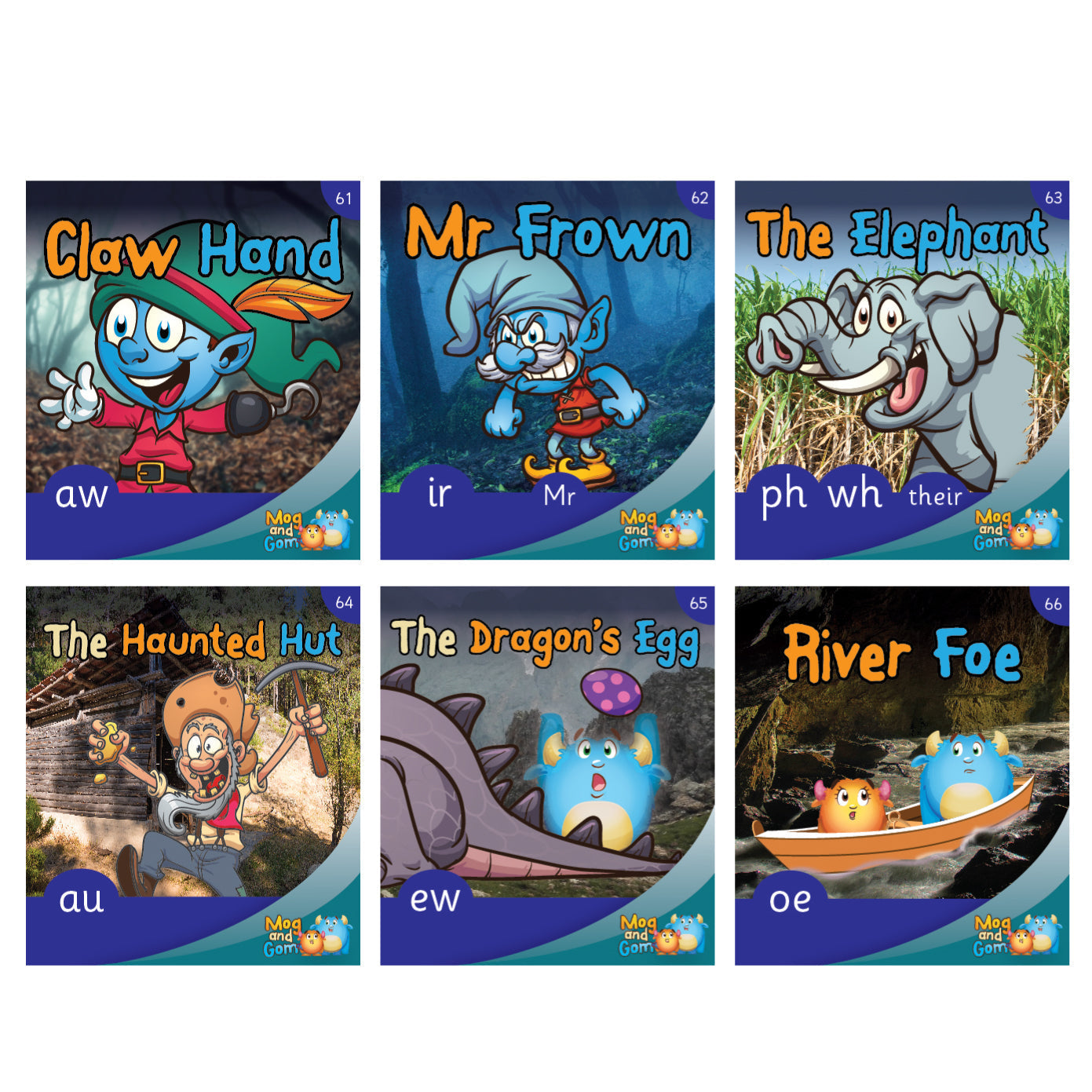 Mog and Gom fully decodable books use our Letters and Sounds systematic phonic progression. The text only includes words using previously taught phonemes. Tricky words are gradually introduced (just like the sounds) and highlighted throughout the story.