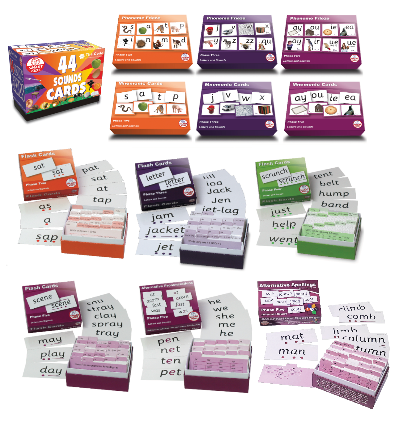 All the words used at each stage of Letters and Sounds are provided in these handy boxed set with dividers. Cards are double-sided, showing the word on one side and the word with sound 'buttons' on the other, representing individual phonemes. Use these cards for playing countdown by seeing how many cards you can read against the clock, or for wordbuilding using magnetic letters. The sound button side can be used for visually demonstrating segmentation, or the reverse process of blending.